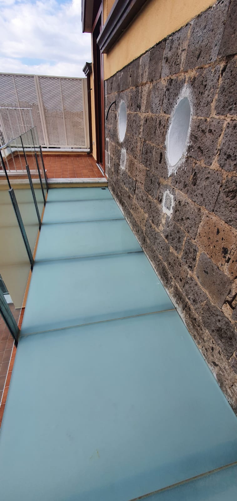 Sono stati ripristinate le murature in tufo esistenti per valorizzare la peculiarità del luogo e conservarne l'integrità